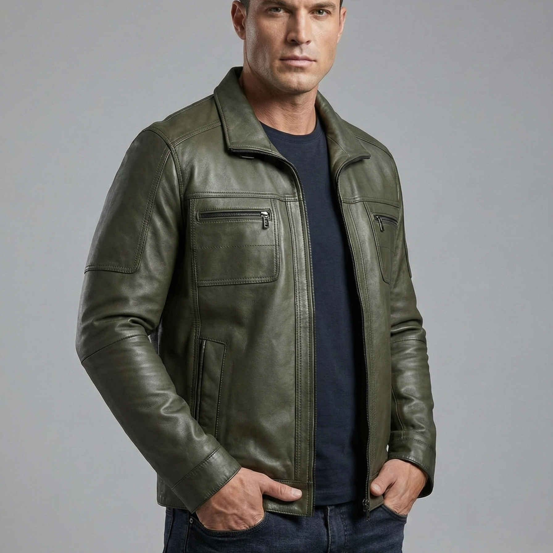 Fonksiyonelliği estetikle birleştiren tasarımda; göğüs kısmında 2 adet fermuarlı cep ve 2 adet yan cep detayı bulunur. İç kısımdaki geniş cep donanımıyla kullanım kolaylığı sunan 1225 Erkek Deri Mont, kaliteli işçiliği ve karakteristik duruşuyla gardırobunuzun vazgeçilmez bir parçası olacak.