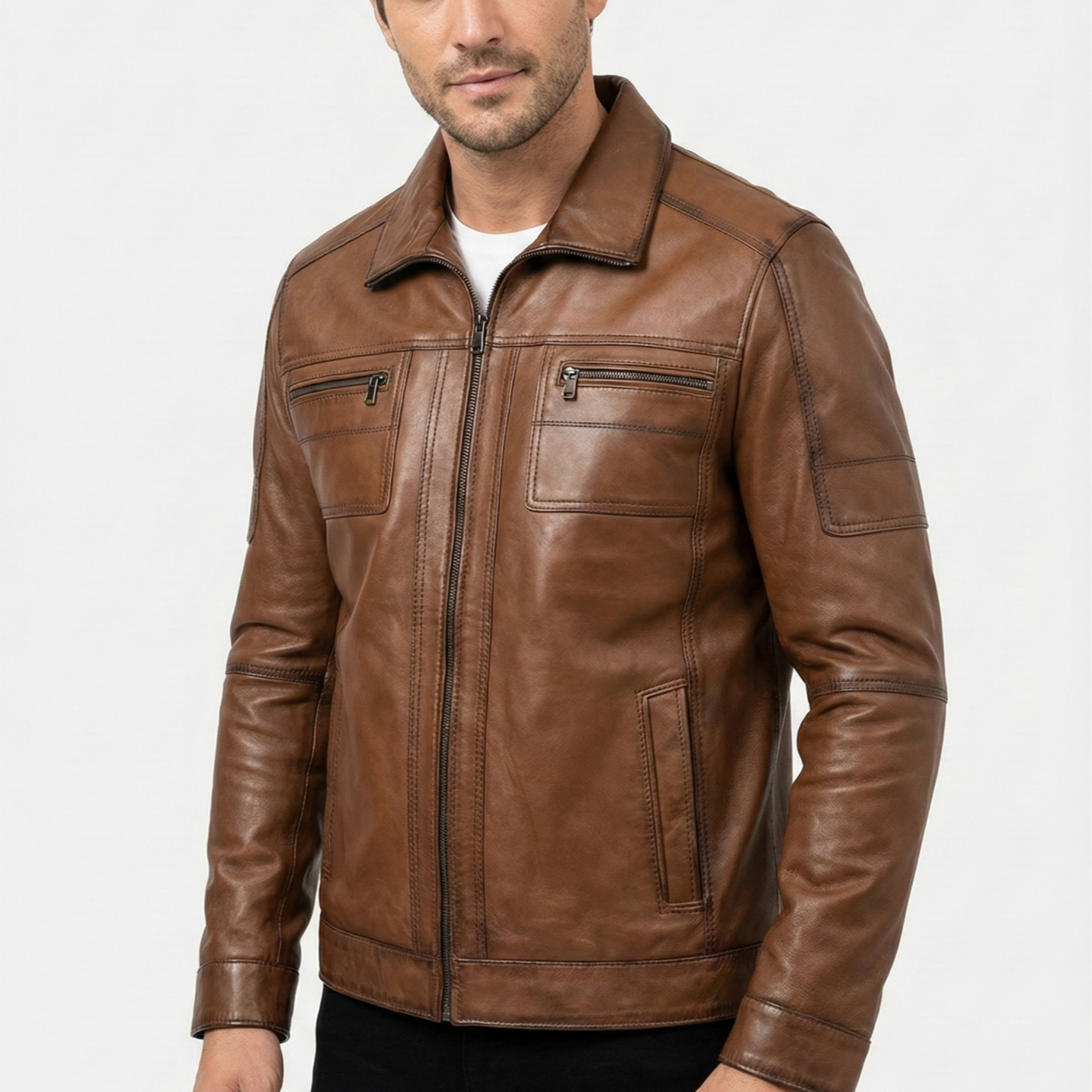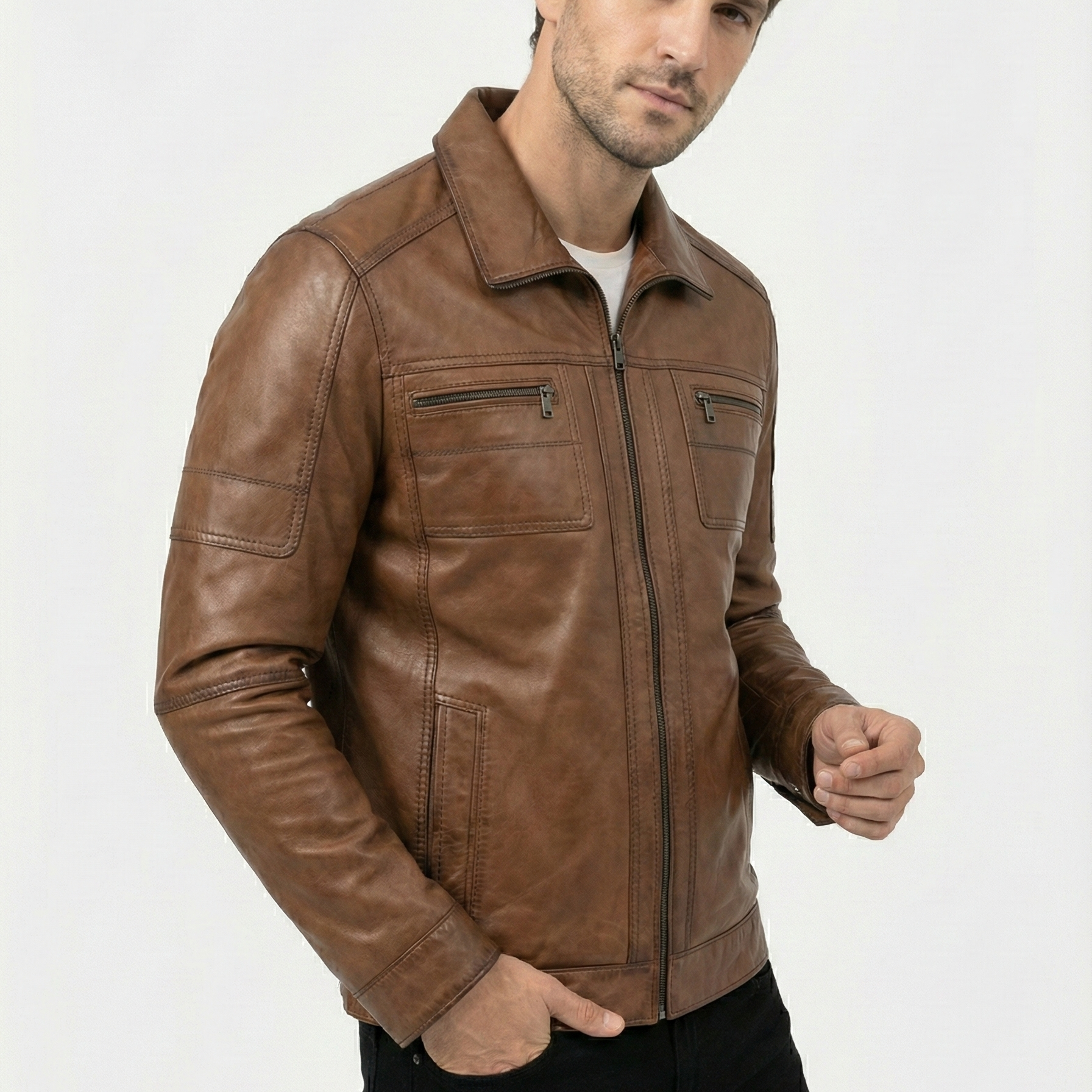 Toprak tonlarının en enerjik ve şık halini yansıtan 1225 Taba Erkek Deri Mont, mevsimsiz stiliyle gardırobunuzun vazgeçilmezi olmaya aday. Klasik gömlek yaka tasarımı, omuzlardaki dikiş detayları ve göğüs üzerindeki fermuarlı cepleriyle hem sportif hem de karizmatik bir görünüm sunar. Vücuda tam oturan kesimi, taba renginin sıcaklığıyla birleşerek jean pantolonlardan kanvaslara kadar her kombini bir üst seviyeye taşır.