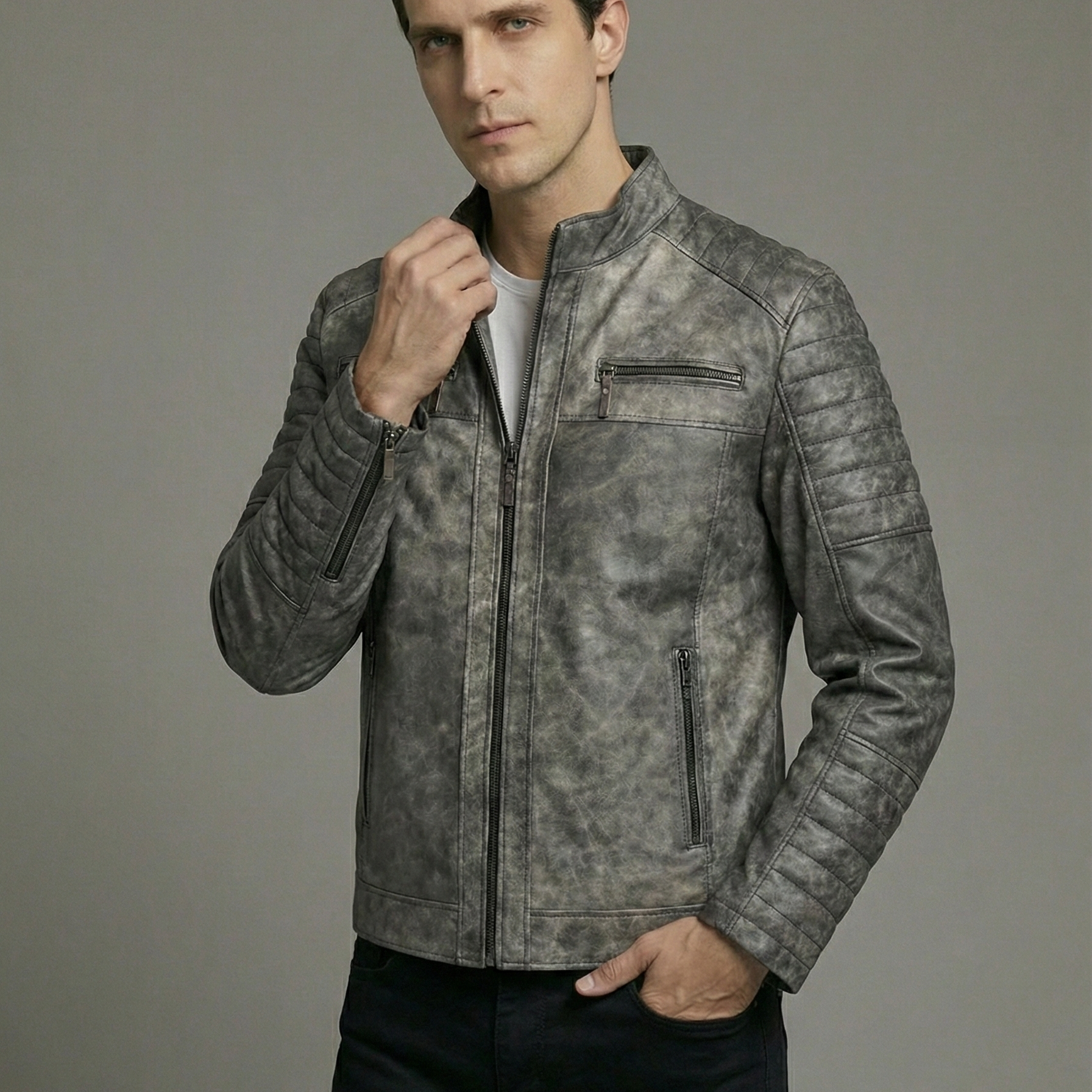 ⚠️ Önemli Not: Dökme gri efekti, deri üzerinde özel bir işlemle elde edilmektedir. Bu doğal süreç nedeniyle, 15837 Dökme Gri Erkek Deri Mont ürünümüzde her beden ve üretim serisinde görseldekine kıyasla ufak ton farklılıkları görülebilir. Bu durum, sahip olduğunuz montun size özel ve tek olduğunun bir kanıtıdır.