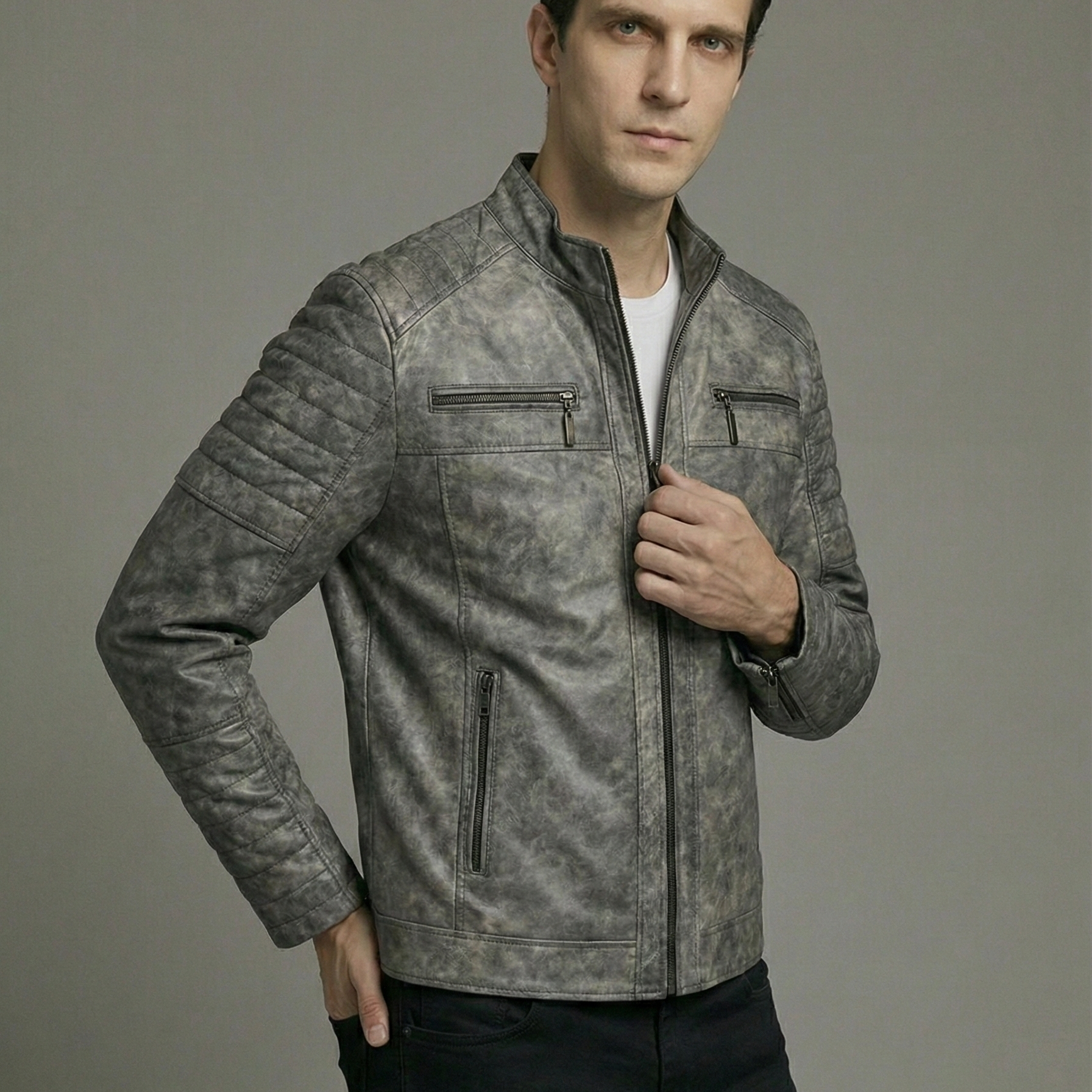 15837 Dökme Gri Erkek Deri Mont