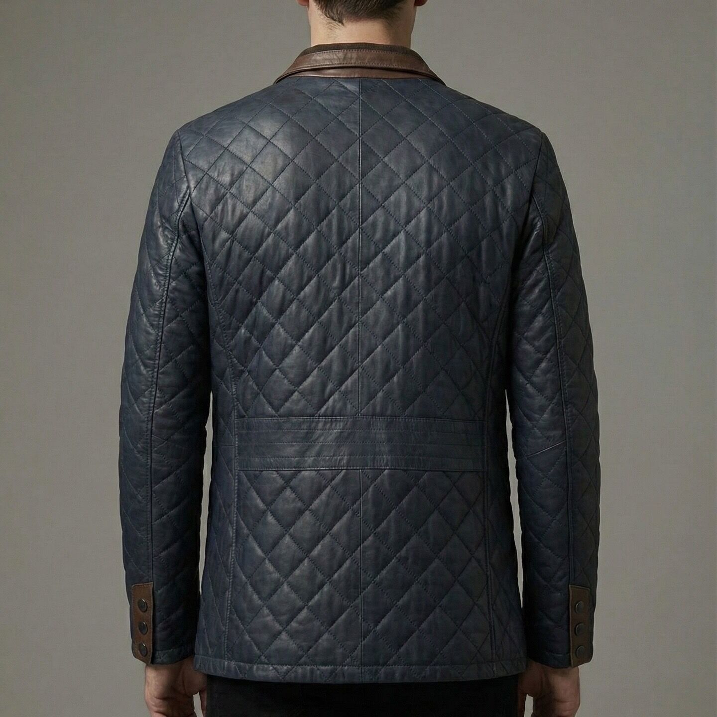 Premium Kapitone İşçilik: Omuzlardan etek ucuna kadar uzanan baklava desenli dikişler, Aston Lacivert Erkek Deri Kaban modeline hem dolgun bir görünüm verir hem de ekstra ısı yalıtımı sağlar.