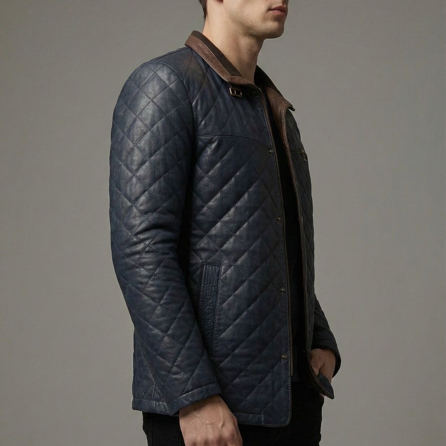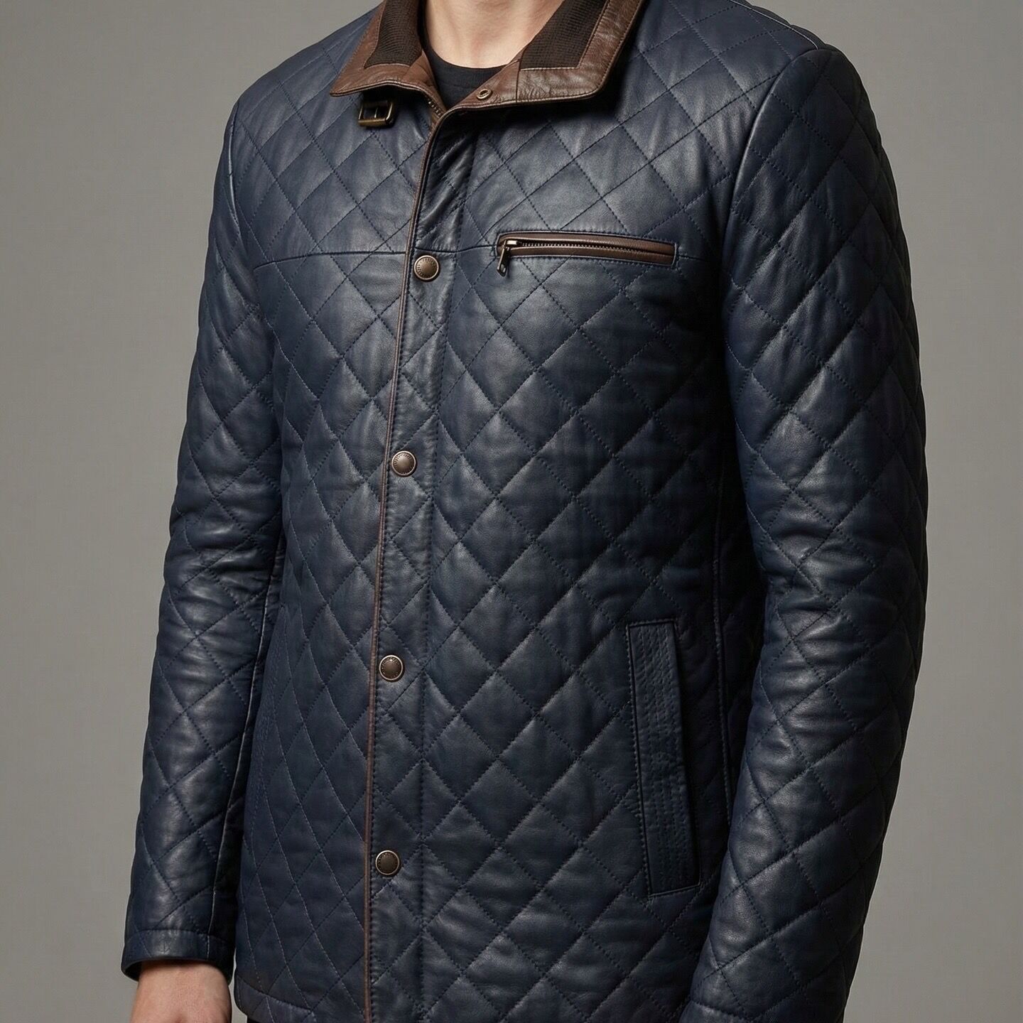 Sıradan düz derilerin aksine, tamamı usta el işçiliğiyle işlenmiş baklava (kapitone) desenleriyle dikkat çeken Aston Lacivert Erkek Deri Kaban, güçlü ve maskülen bir stil arayan erkekler için tasarlandı. Lacivertin asil tonu ile yakadaki taba rengi deri detayının yarattığı kontrast, bu modele eşsiz bir karakter kazandırıyor.