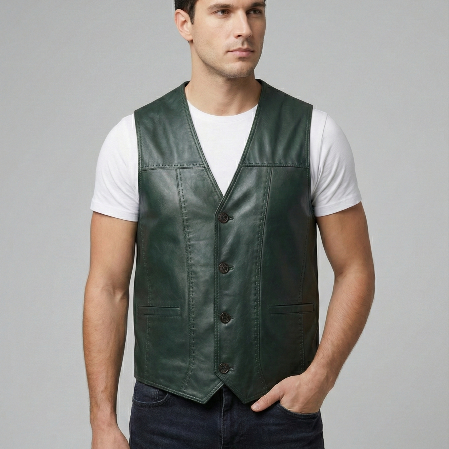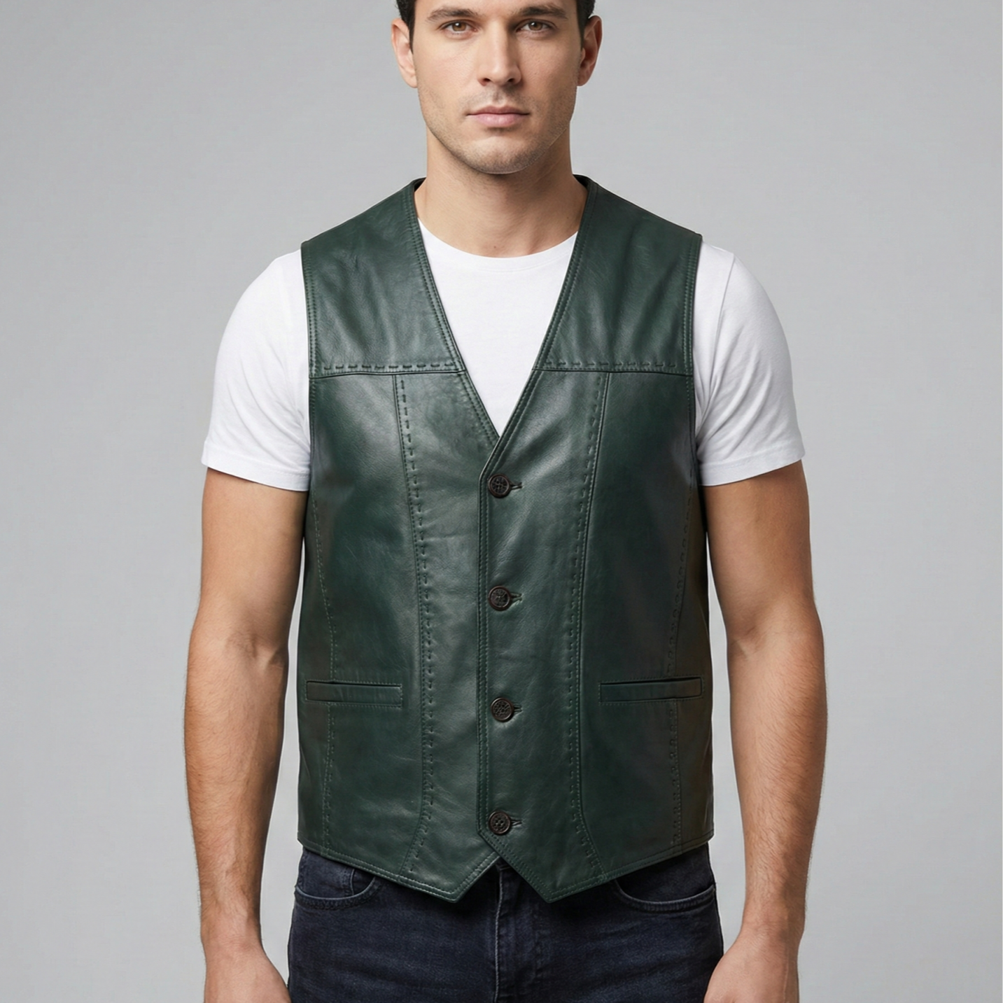 Markamızın köklerinden ilham alan ve gururla soyadımızı taşıyan bu özel koleksiyonun en karizmatik parçası: Ata Yeşil Erkek Deri Yelek. Bu model, klasik giyimin ağırlığını modern şehrin dinamizmiyle ustaca buluşturuyor.