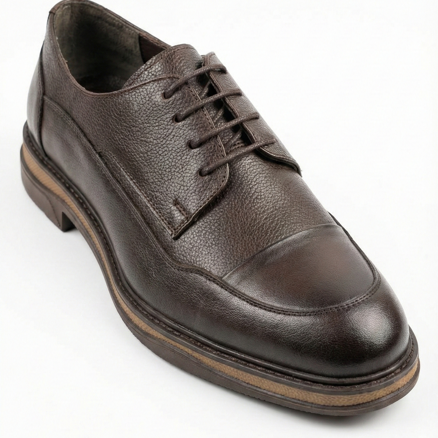 Günlük şıklığı yeniden tanımlayan Bitter Kahve Dokulu Deri Erkek Ayakkabı, maskülen detayları ve üstün rahatlığıyla dikkat çeker. Klasik derby tasarımını modern taban yapısıyla buluşturan bu model, %100 hakiki derinin doğal dokusuyla karakter kazanmıştır.