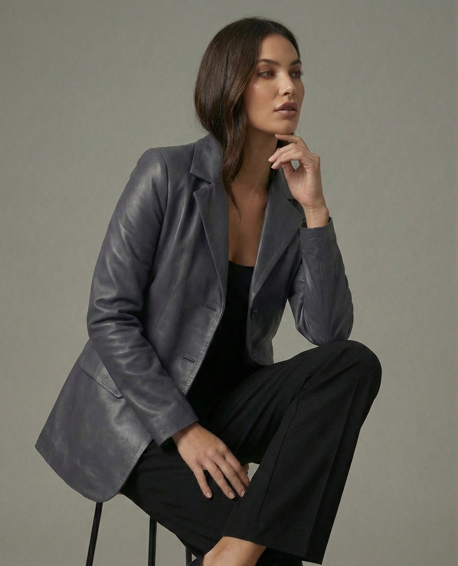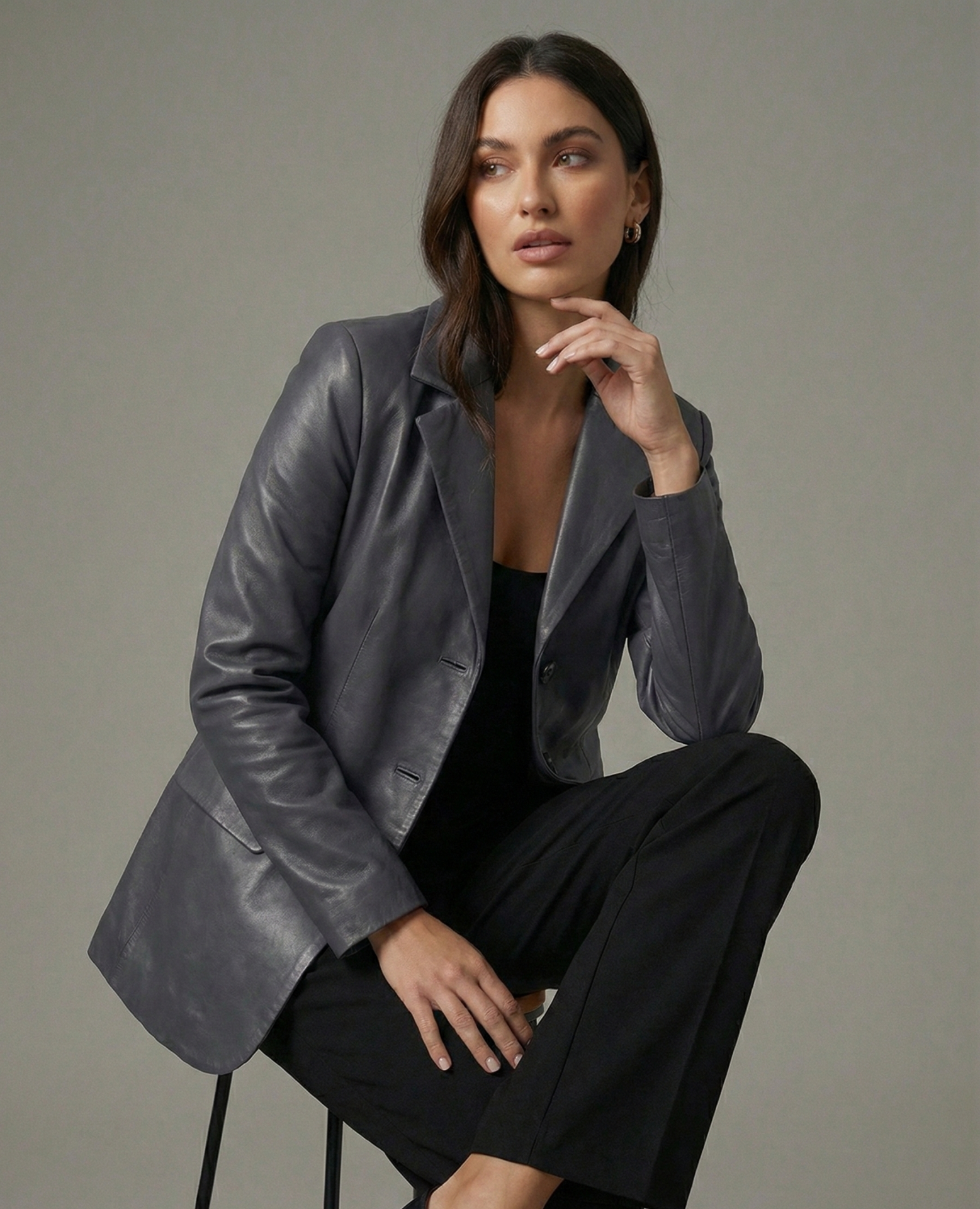 Klasik siyahın ötesine geçmek ve stilinde daha yumuşak, modern bir geçiş yakalamak isteyen kadınlar için tasarlandı. Dalia Gri Bayan Deri Ceket, blazer ceket formunun resmiyetini, gri rengin sunduğu çağdaş ve dingin havayla buluşturuyor.