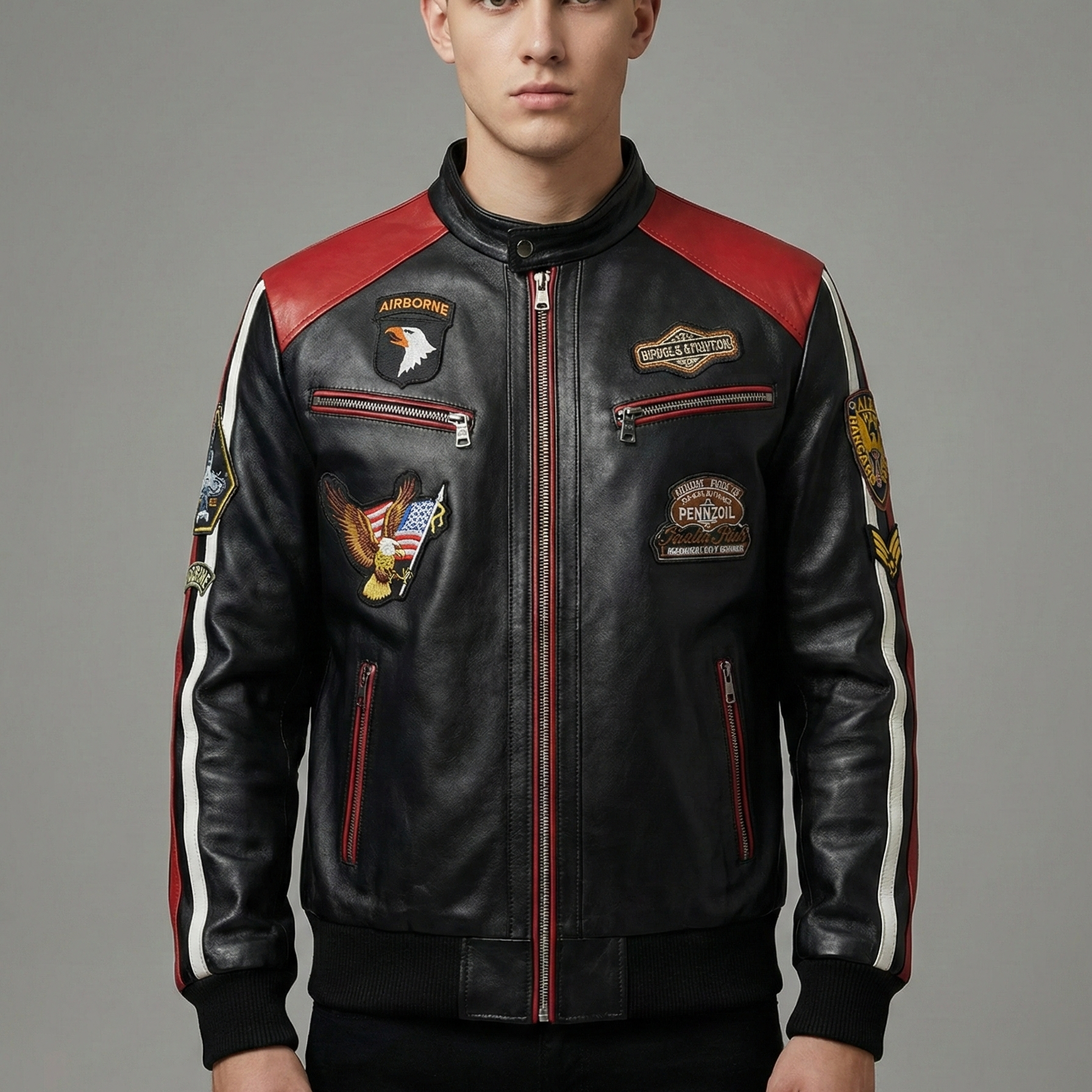 Bu özel tasarımın en büyük farkı, üretiminde kullanılan hakiki dana derisinin sunduğu üstün mukavemettir. Kuzu derisine göre daha tok, kalın ve dayanıklı bir yapıya sahip olan dana derisi, monta hem maskülen bir ağırlık katar hem de zorlu koşullara karşı tam koruma sağlar. Omuzlardaki kırmızı paneller, kollardaki beyaz şeritler ve ön yüzdeki ikonik armalar (patchler), Daytona Siyah Erkek Dana Derisi Mont modelini sıradan bir deri ceketten ayırarak bir yaşam tarzı sembolüne dönüştürür.