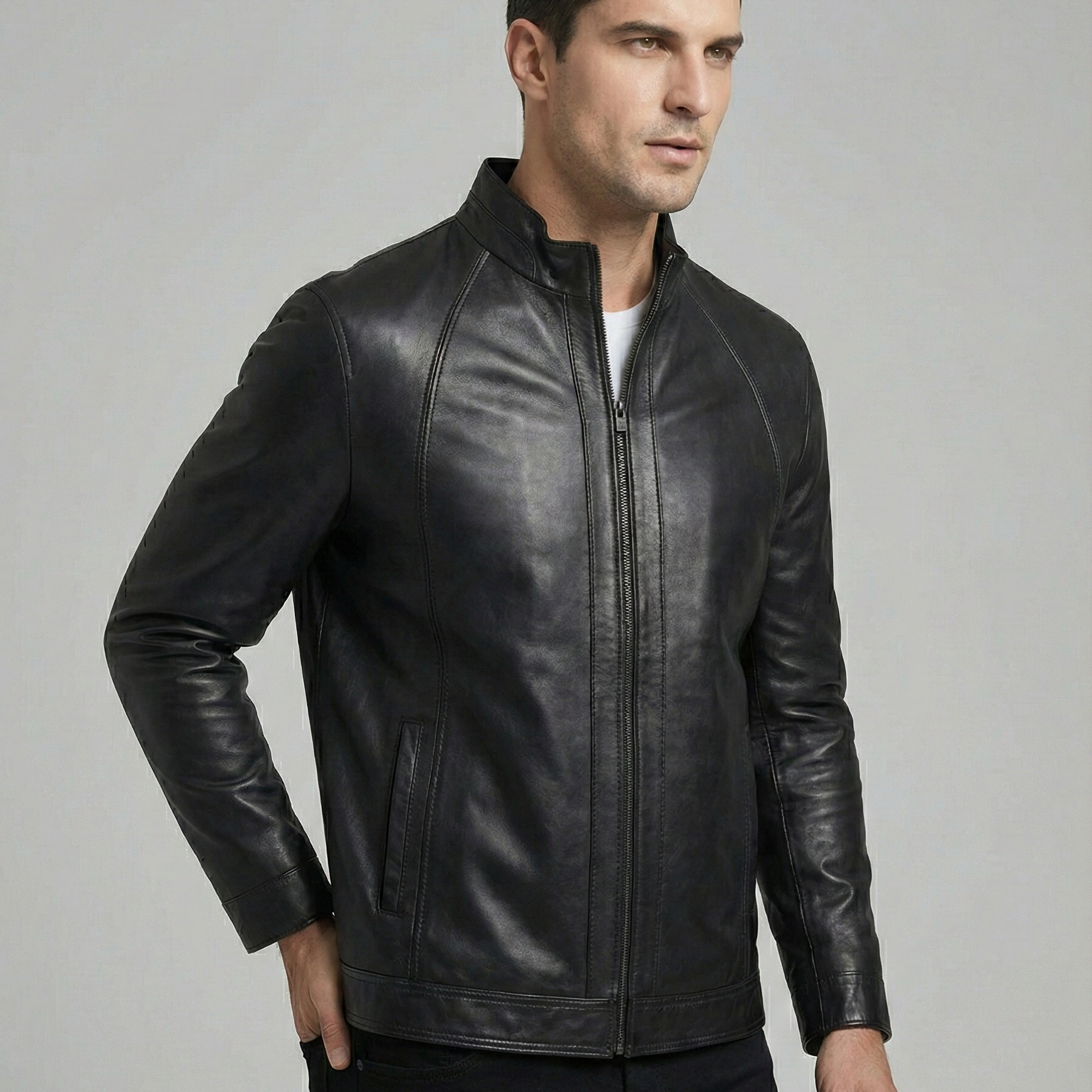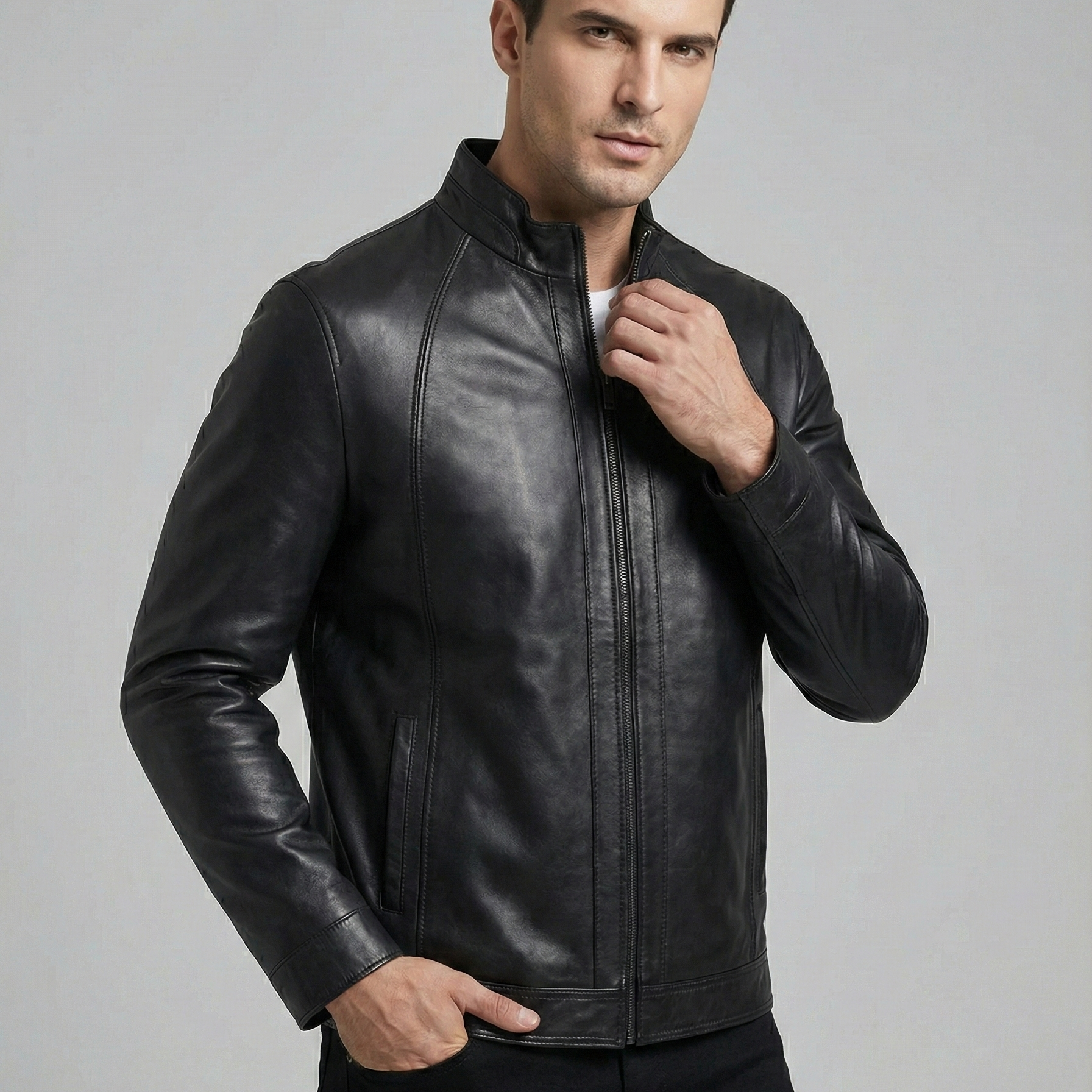 Siz de E-46 Erkek Siyah Deri Mont ile her mevsim, her ortamda stilinizi konuşturun.