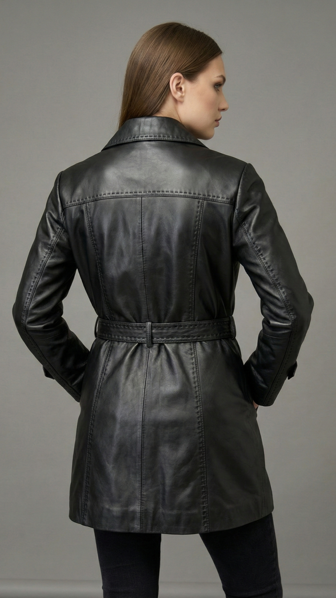 Vücudu saran kalıbı ve beldeki şık kuşak detayı sayesinde silüetinizi kusursuzca ortaya çıkaran tasarım, hem ofis şıklığına hem de günlük kombinlere mükemmel uyum sağlar. Kullanım açısından ideal bir koruma ve estetik duruş sunan Gisella Siyah Bayan Deri Ceket, omuzdan eteğe yaklaşık 90 cm uzunluğa sahiptir. Bu ideal boy oranı, onu pantolonlardan elbiselere kadar her parçayla rahatça kombinlenebilen çok yönlü bir "deri kaban" havasına sokar.