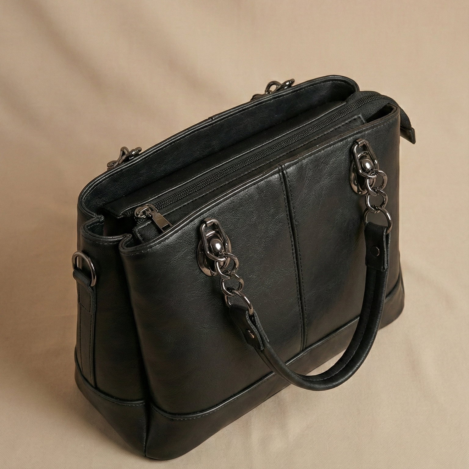 Günlük stilinize modern bir dokunuş katmak için tasarlanan Kelebek Siyah Bayan Deri Çanta, estetik duruşu ve kullanışlı yapısıyla dikkat çekiyor. Sap kısımlarındaki özel zincir detayları, siyahın asaletine ışıltılı bir hava katarak çantayı hem ofis kombinleri hem de özel davetler için mükemmel bir tamamlayıcı haline getiriyor.