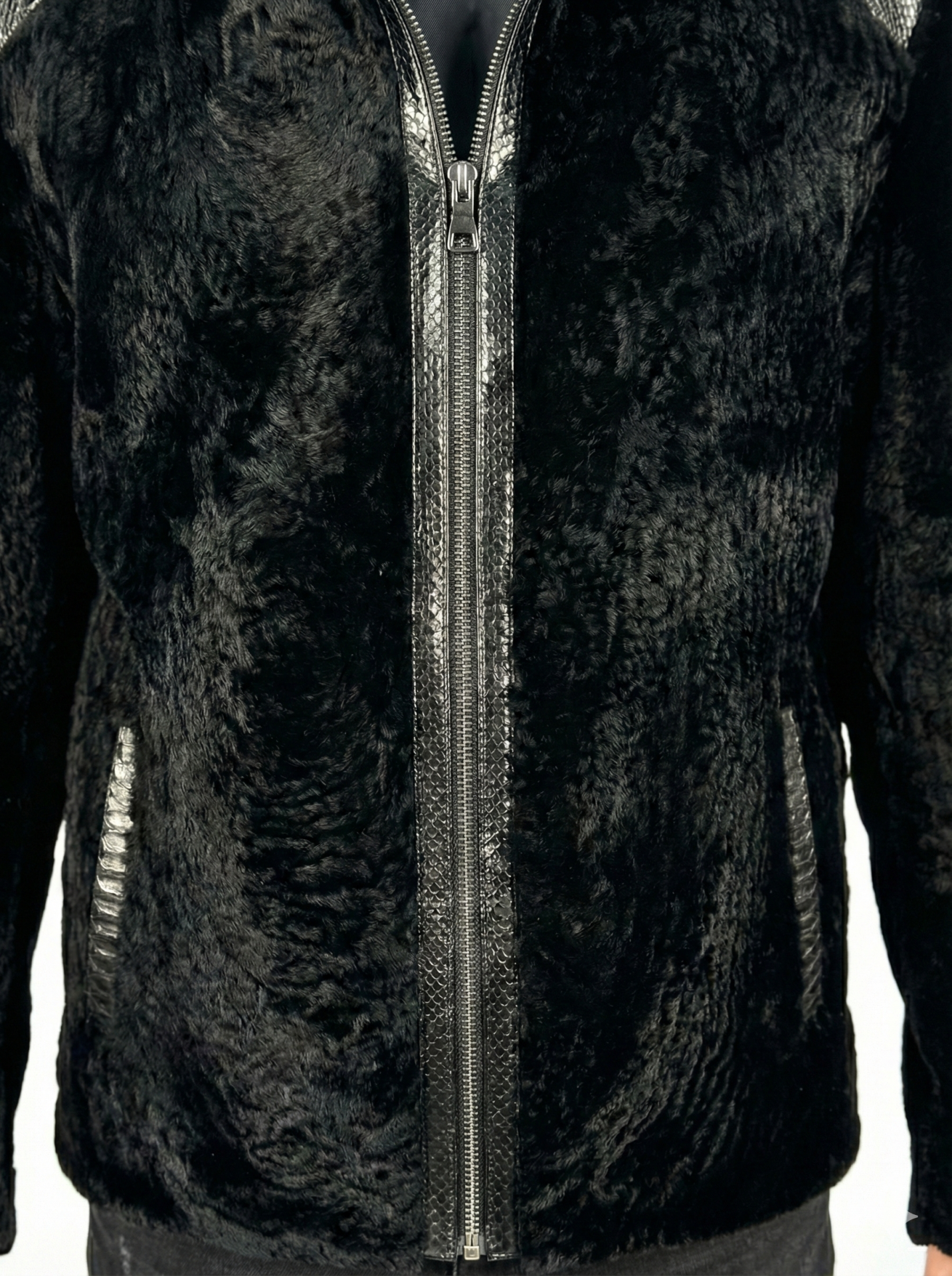 Mamba - Hakiki Piton Detaylı Siyah Astragan Kürklü Erkek Mont