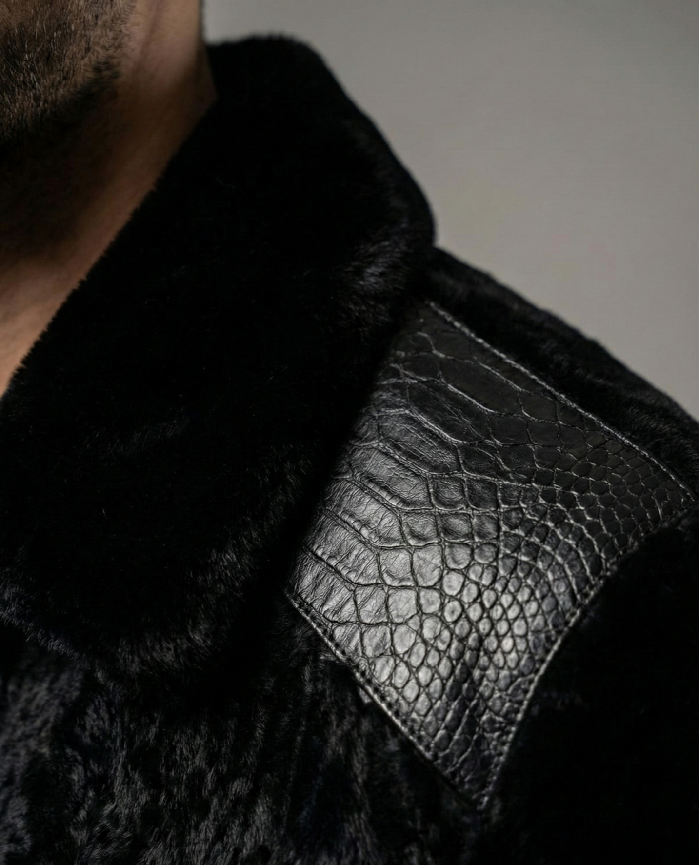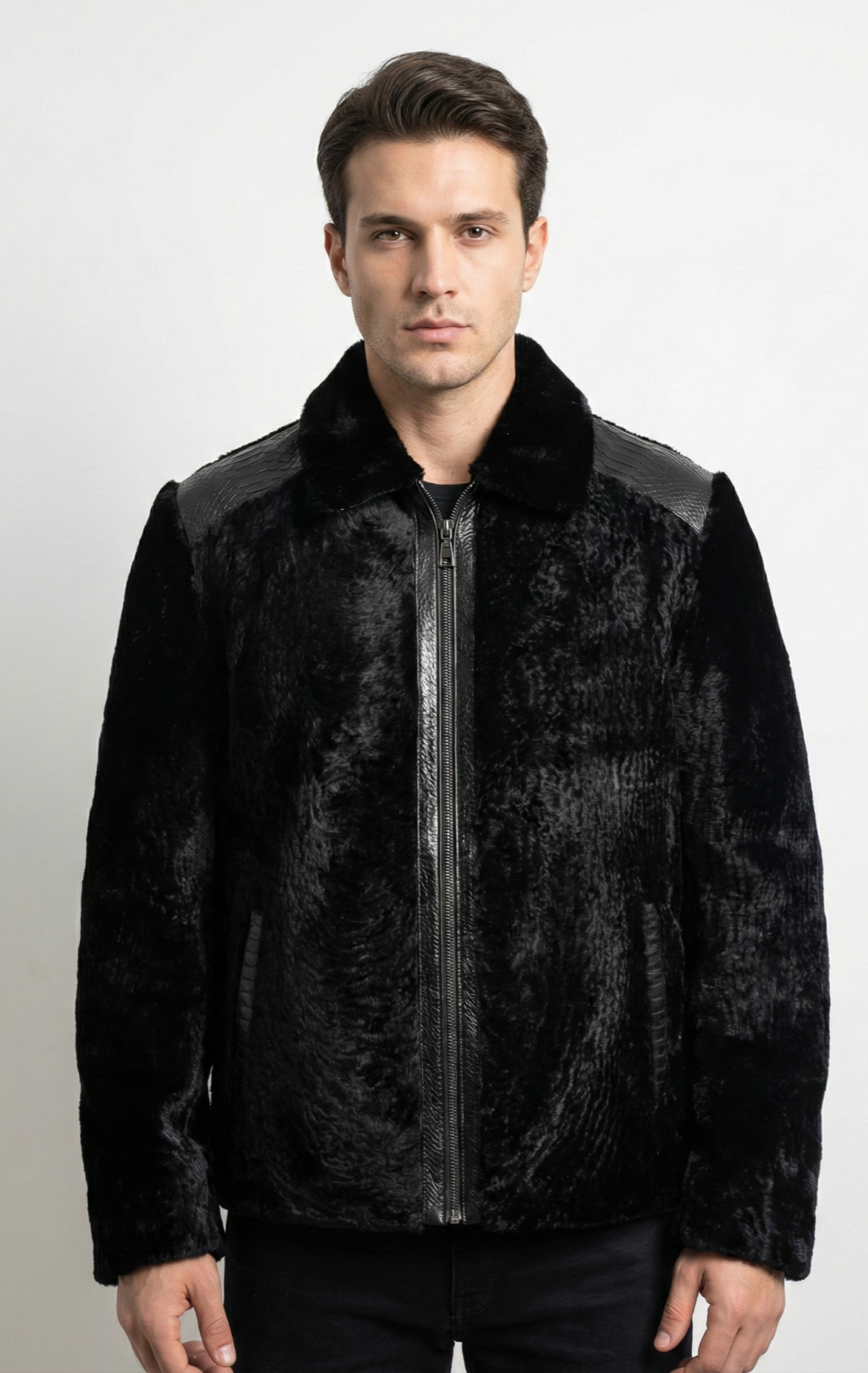 Koleksiyonumuzun en iddialı parçası olan Mamba Piton Detaylı Astragan Erkek Mont, asalet ve lüksü tek bir tasarımda buluşturuyor. Seri üretimde bulunmayan bu özel model, omuzlardaki gerçek piton derisi ve gövdedeki siyah astragan kürkün kusursuz uyumuyla, fark yaratmak isteyen beyefendiler için Kayseri Kapalı Çarşı atölyelerimizde tasarlandı.