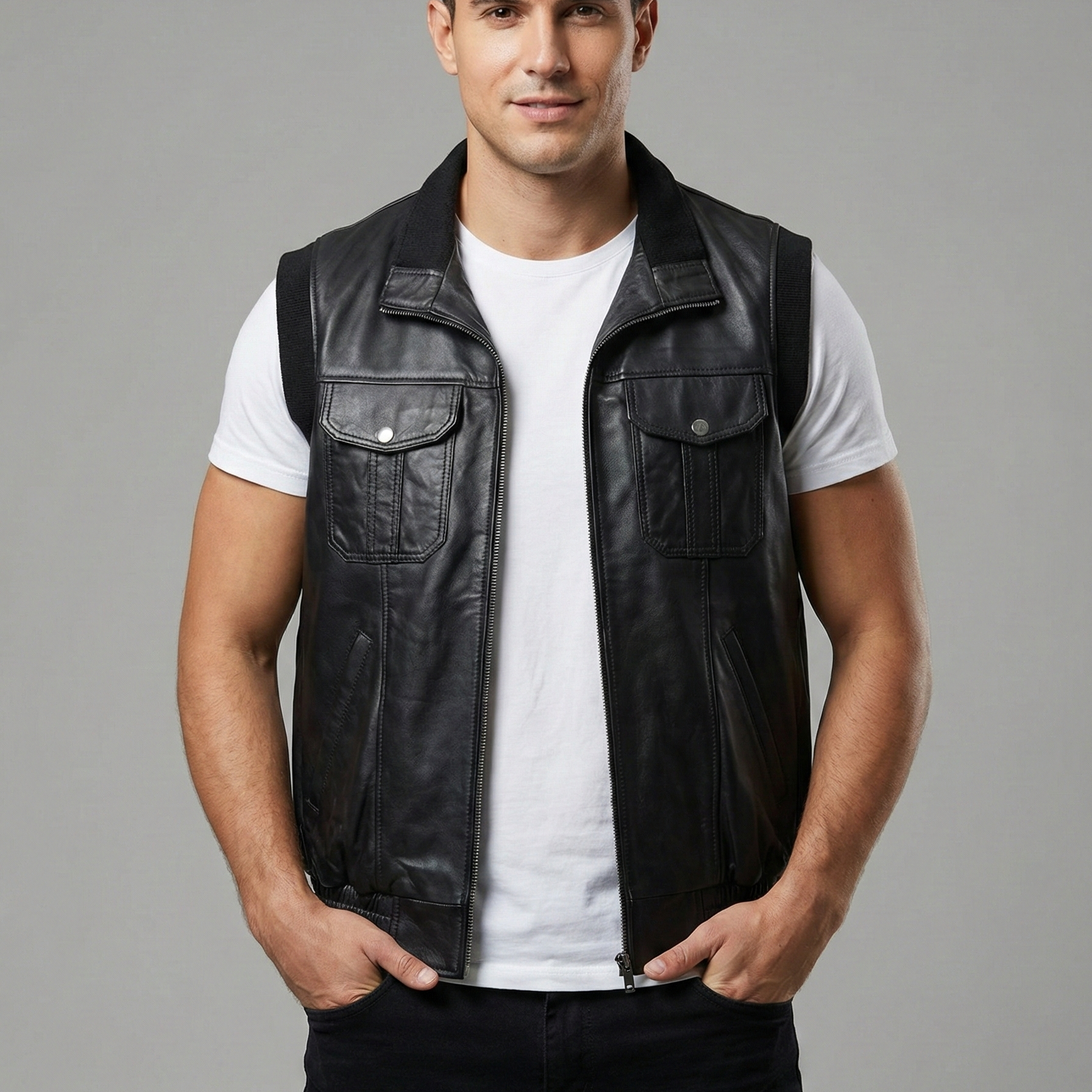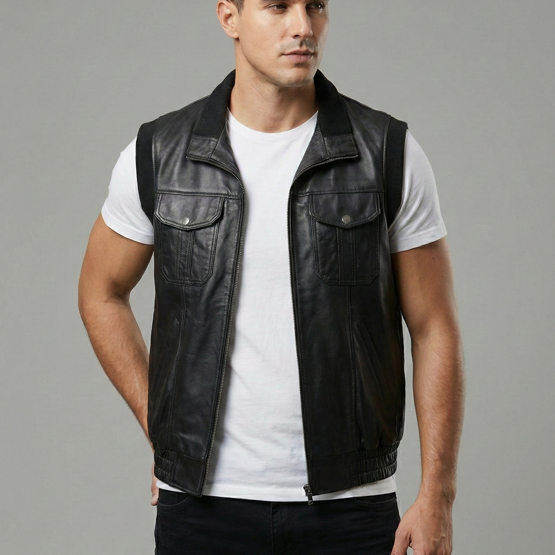 Sezon Deri kalitesi ve Marco Siyah Erkek Deri Yelek farkıyla, sportif stilinizi bir üst seviyeye taşıyın.