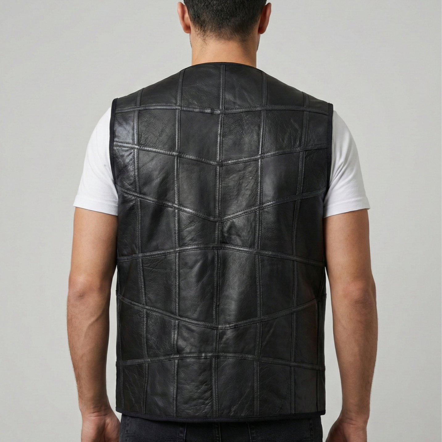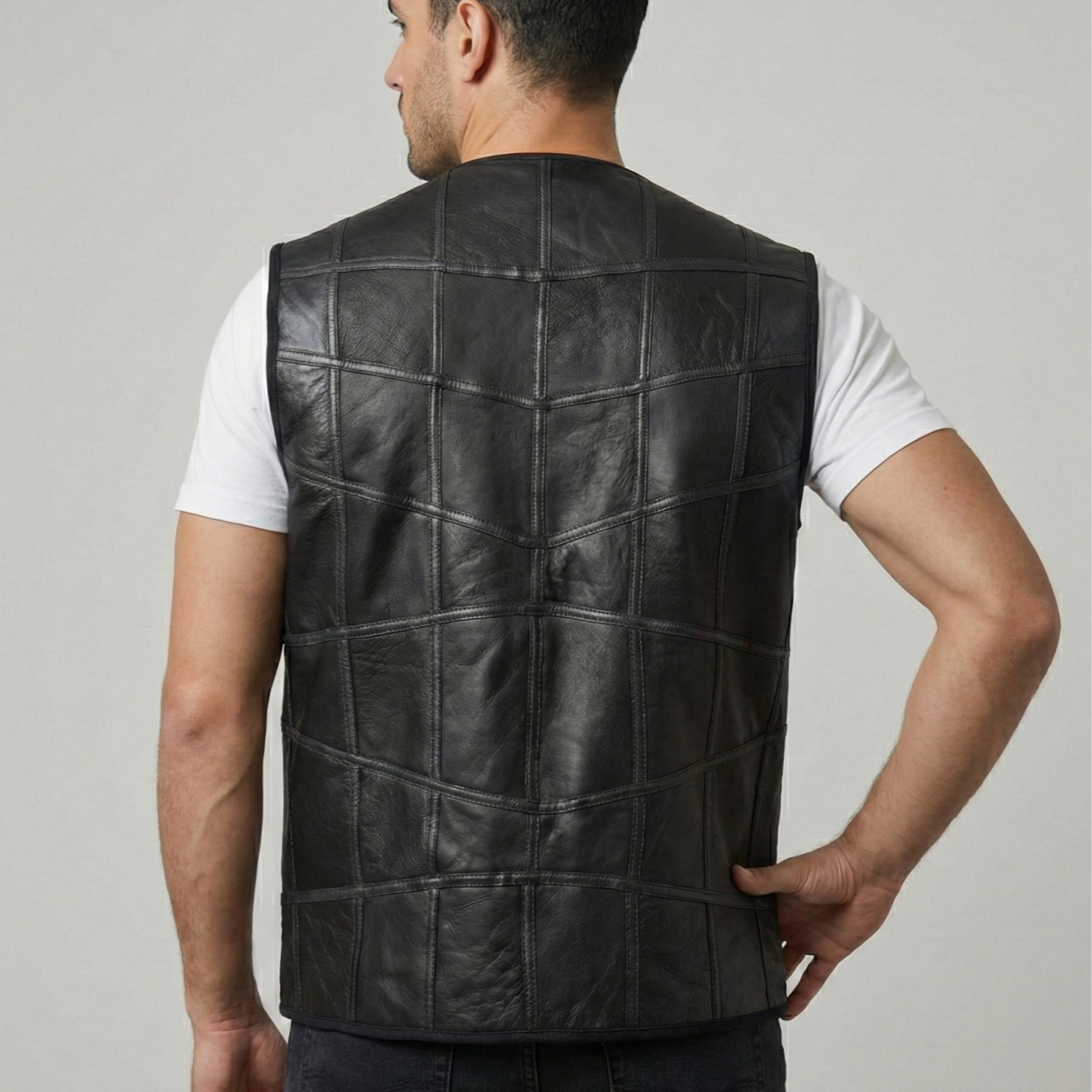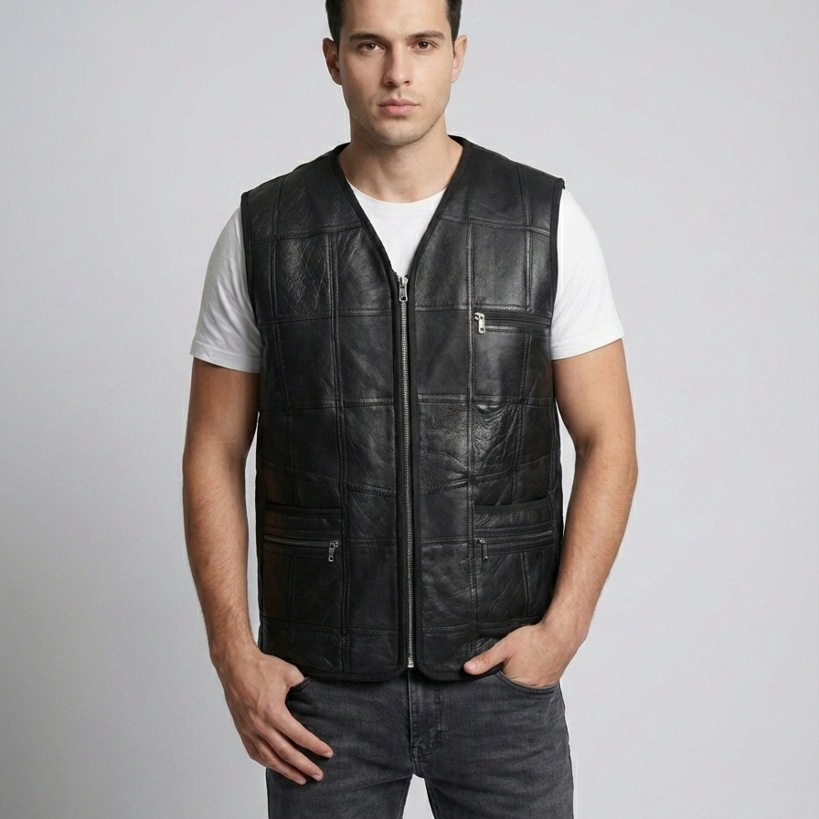 Parçalı Napa Erkek Deri Yelek