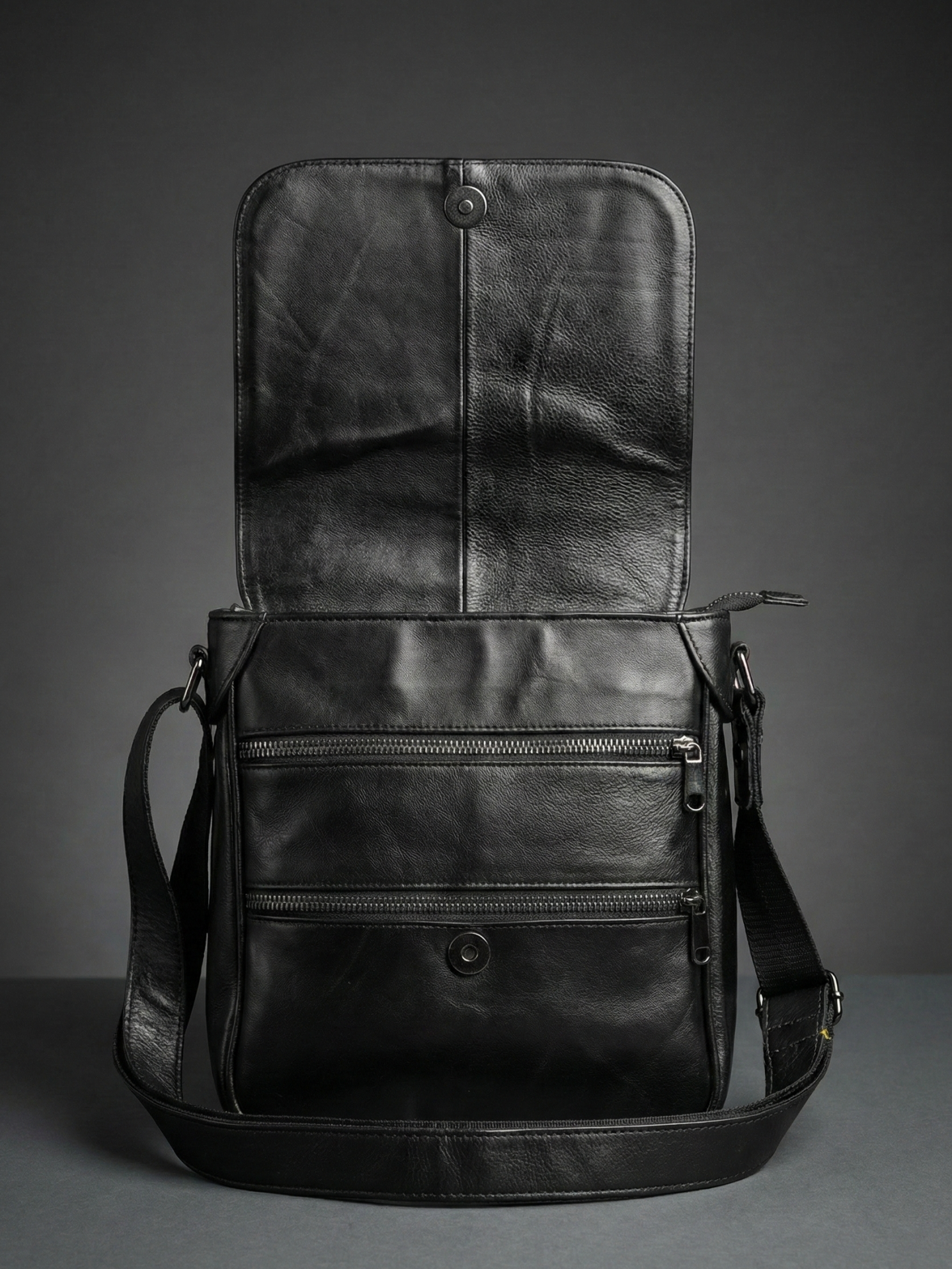 Geniş Hacim ve Pratik Kullanım Tasarımıyla fark yaratan Postacı Siyah Deri Çanta, çok gözlü yapısı sayesinde eşyalarınızı düzenli tutmanızı sağlar. Çantanın kapak kısmını kaldırdığınızda sizi karşılayan 2 adet fermuarlı bölme ve 1 adet geniş ana göz; tablet, cüzdan veya not defteri gibi ihtiyaçlarınız için ideal saklama alanı sunar. Ayrıca arka kısımda bulunan ekstra fermuarlı göz, telefon veya anahtar gibi sık kullandığınız eşyalara hızlı erişim imkanı tanır.