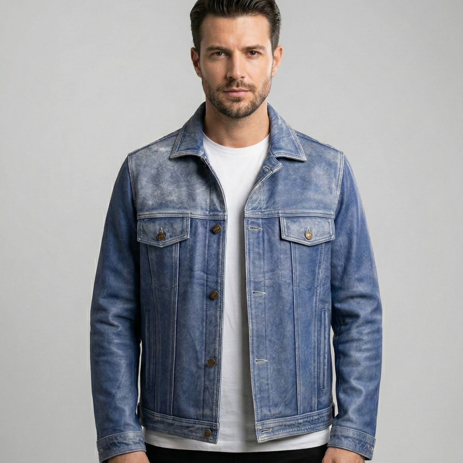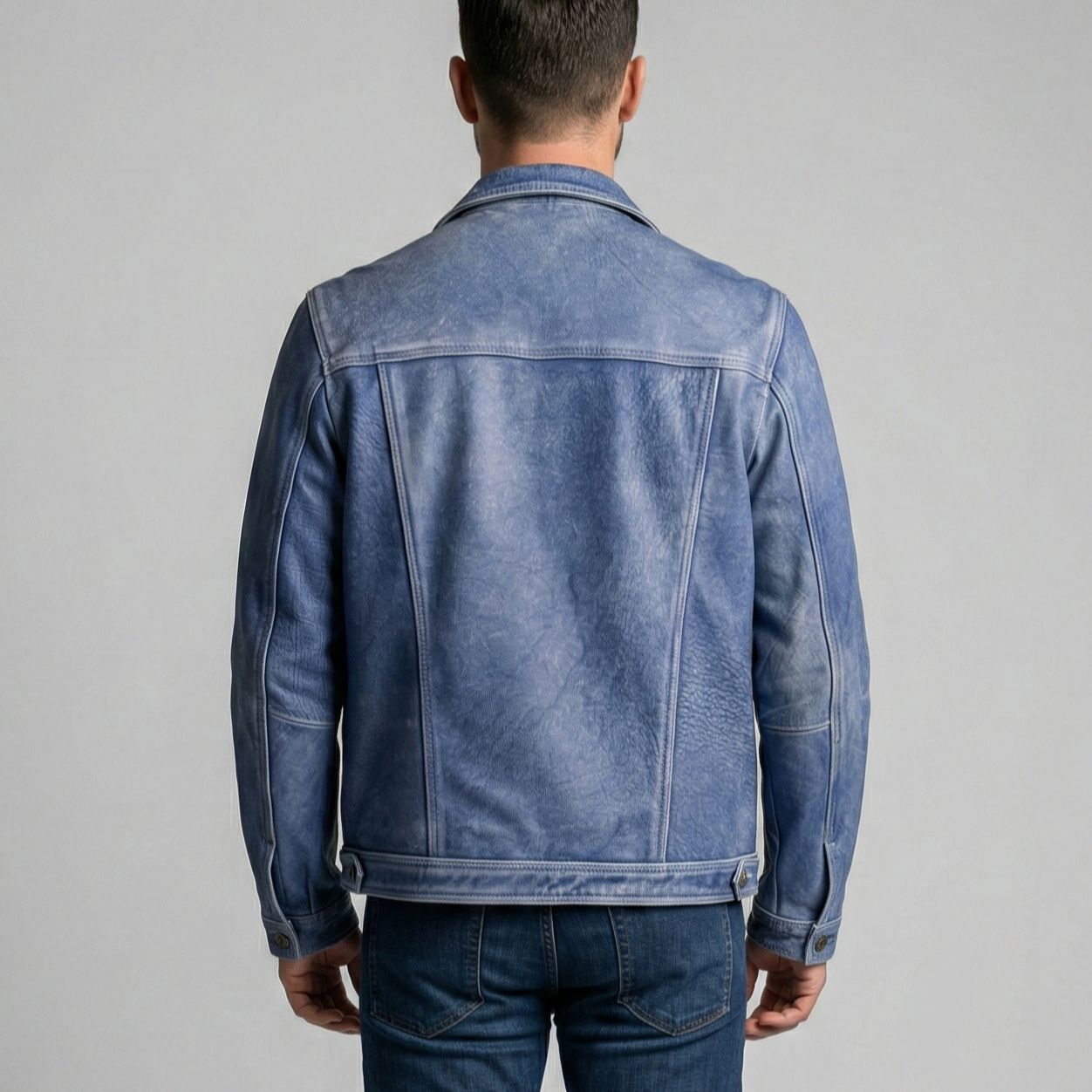 Gardırobunuzun en iddialı parçası olmaya aday Vintage Mavi Erkek Deri Mont | 2116, klasik jean ceket kalıbını Sezon Deri'nin premium işçiliğiyle buluşturuyor. Tamamen orijinal dökme kuzu derisinden özenle üretilen bu özel tasarım, eskitilmiş (vintage) görünümü sayesinde hem günlük hem de şık kombinlerinizde zamansız bir duruş sergiler.